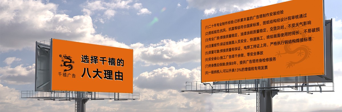 世紀(jì)之交,石家莊千禧廣告裝飾有限公司(下方簡稱千禧廣告公司或公司)自2000年10月10日創(chuàng)立伊始,即在燕趙大地落地生根,成長為國內(nèi)擁有23年施工經(jīng)驗的實體型戶外廣告設(shè)施制作工廠。公司集新品研發(fā)、結(jié)構(gòu)設(shè)計、生產(chǎn)制作、施工建造于一體,現(xiàn)代化生產(chǎn)廠房為大中型高炮廣告牌(又稱高炮廣告塔、單立柱廣告牌、單立柱廣告塔、擎天柱廣告塔、擎天柱廣告牌)、龍門架、三面翻鋼結(jié)構(gòu)、LED廣告屏鋼結(jié)構(gòu)等的精益生產(chǎn)、高效流水化作業(yè),產(chǎn)品交工質(zhì)量過硬,公司擁有現(xiàn)代化生產(chǎn)車間,配備了不可或缺的硬件裝備。